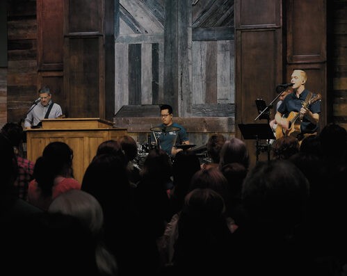 We worship through music by singing contemporary praise songs and choruses as well as traditional hymns — all in a modern musical style. An important part of our time together through music is not only the style of music but also the words that accompany the songs. We desire to sing songs to our God that lift up His greatness and that praise Him His mercy and grace toward us. We seek to have “vertical worship” with songs that put the Lord at the center.